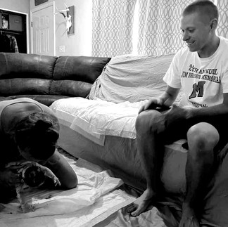 I try to get some sleep. Per the advice given to me by my widwives during my false alarm...I stopped timing and just tried to quiet my mind. If labor was real and progressing...I didn't need a timer to tell me. But around 3:30 I just can't do it...I cannot sleep. I wake up Ryan and take a shower. Still, the contractions keep coming. At about 4:30 we decided to give the midwives a call. We set up the living room for delivery during the time it takes them to get there. No joke, our living room looked like we were preparing to paint every square inch of the walls and ceiling. Shower curtains and chucks pads replaced our carpeted living room floor. Ryan was very concerned about "fluids" ruining the carpet or couch.